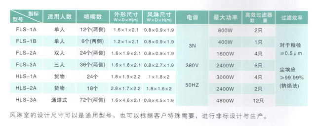 風(fēng)淋室是人身或物料用凈化設(shè)備,它是利用通過(guò)初/高效過(guò)濾器處理的高速潔凈氣流,清除進(jìn)入風(fēng)淋室內(nèi)的人身或物料表面上附著塵埃粒子的設(shè)備。由于風(fēng)淋室的兩道門是不能同時(shí)打開的(電子或機(jī)械互鎖),所以同時(shí)起到氣閘的作用,防止外部污染空氣進(jìn)入潔凈室,并維持潔凈間內(nèi)的正壓。
